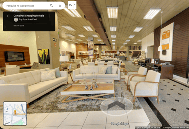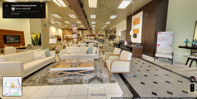 Tour interativo dentro da loja, permitindo que clientes conheçam o showroom sem sair de casa. Resultado: mais visitas presenciais e maior destaque no Google Maps para quem busca móveis na região.