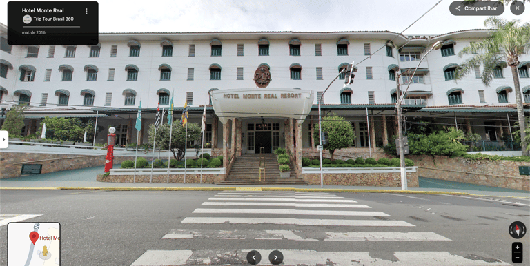 Experiência imersiva em 360° mostrando recepção, áreas de lazer e suítes do hotel. O tour virtual ajudou a aumentar reservas online e atraiu novos hóspedes pelo Google Maps e buscas locais.