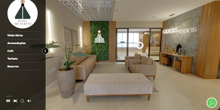 Ambiente digital exclusivo com menus interativos, fotos e tours 360° para apresentar todas as áreas do hotel e facilitar a tomada de decisão do cliente.